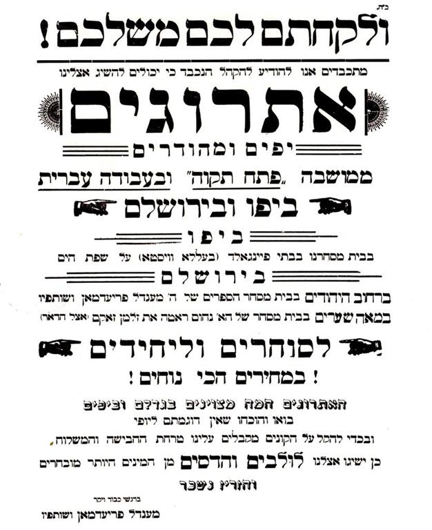 המחזה מתרחש בעיר צפת בשנת 1870. צפת היתה אז עיר מעורבת המחולקת לרובע יהודי ורובע מוסלמי. היהודים בארץ ישראל בתקופת היישוב הישן עסקו בלימוד תורה ולא בחקלאות. עקב כך, ולמרות סכנת ההתבוללות, היהודים היו תלויים לחלוטין בערבים לצורך קניית המזון, והפלאחים הערבים אף גידלו עבורם אתרוגים לחג הסוכות.