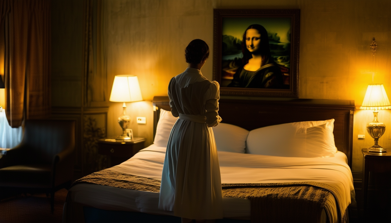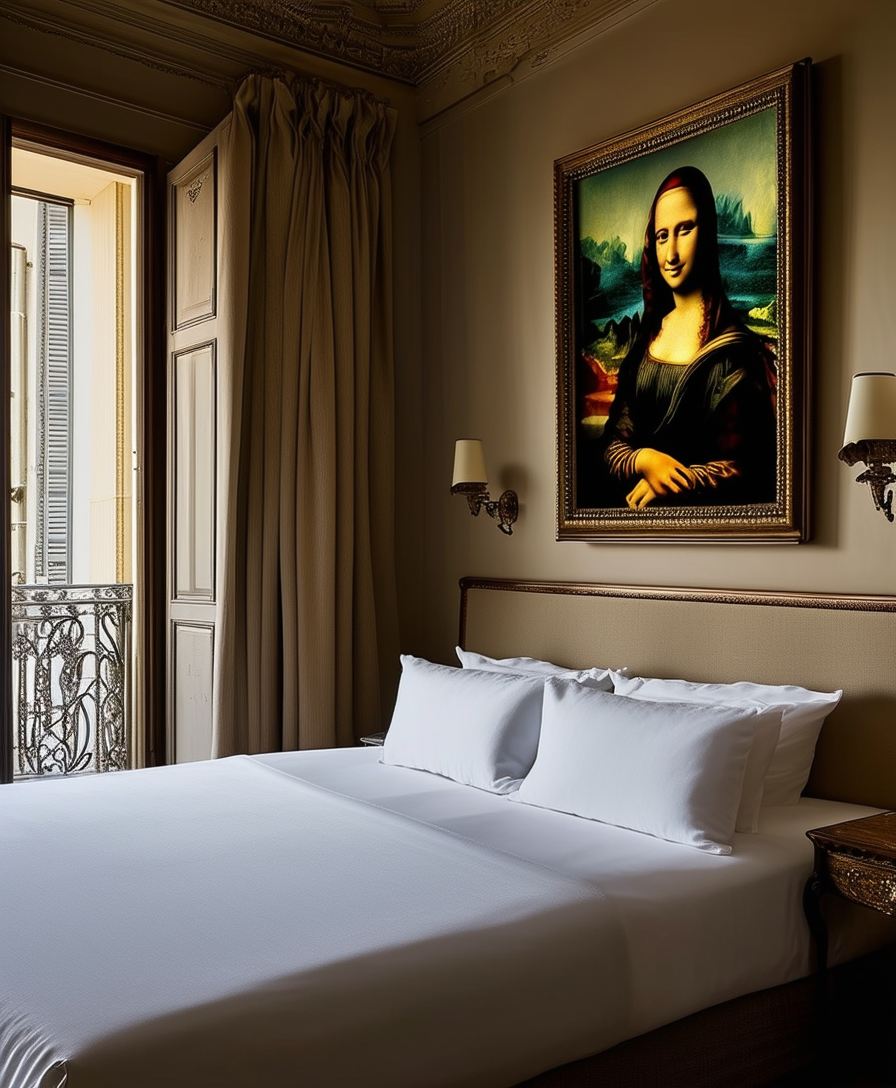 נכון, היא נראית בדיוק כמו כל שאר 29 המונה ליזות בשאר החדרים במלון. בדיוק בגלל זה אף אחד אף פעם לא יחשוד שדווקא כאן בחדר 17 במלון העלוב הזה תלויה המונה ליזה המקורית שלאונרדו דה וינצ’י צייר לפני 500 שנה!