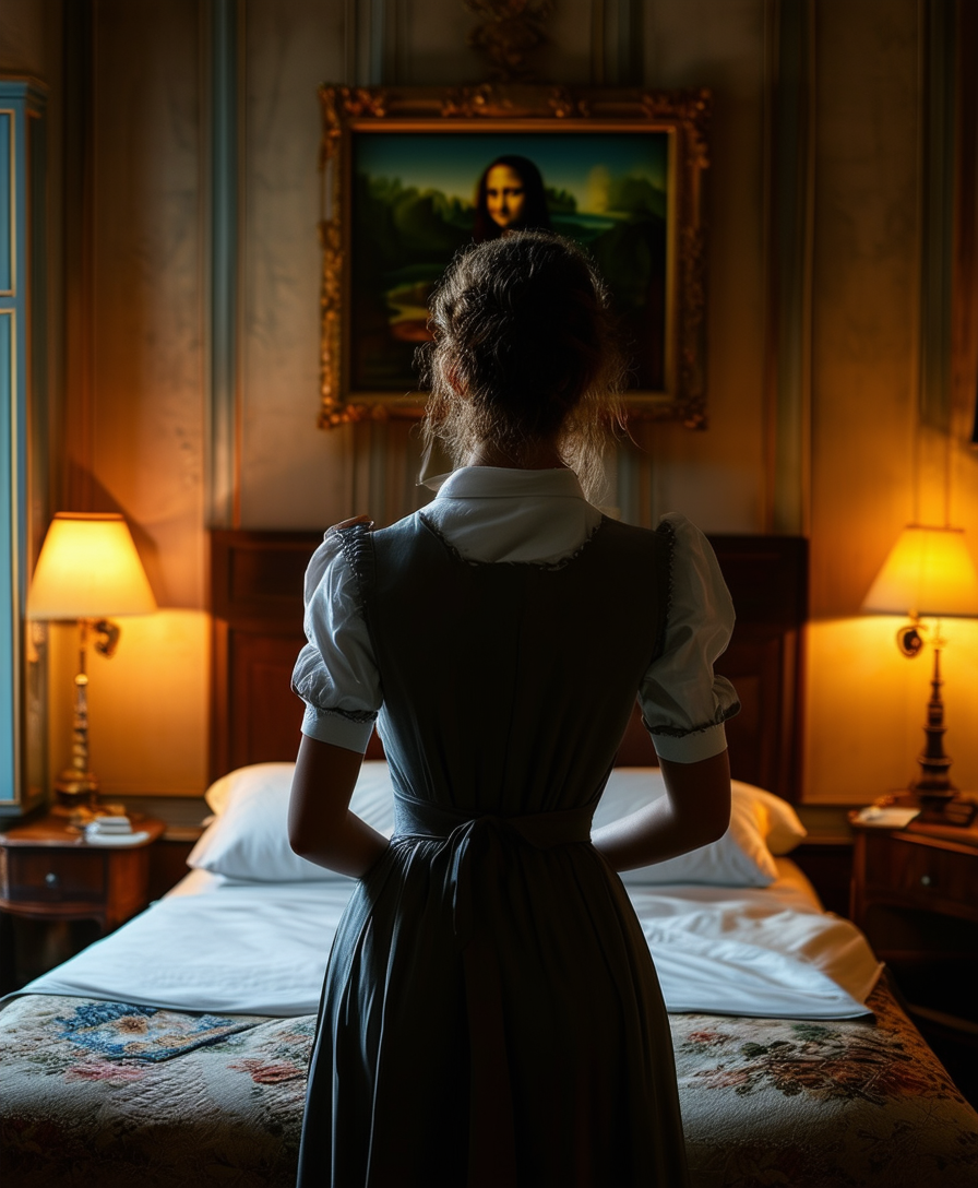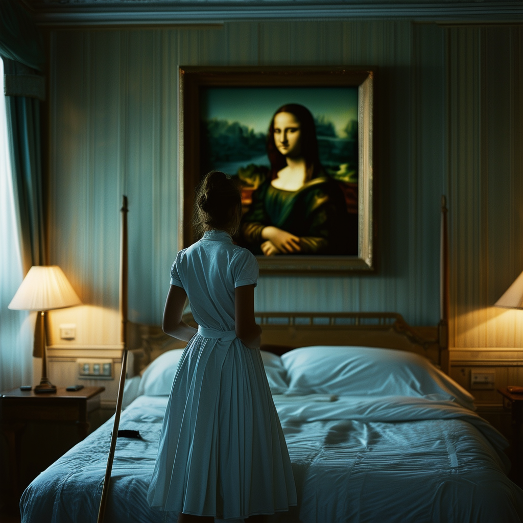 היה לי נחמד לחשוב שדניאל מרקביץ’ מנתניה נמצאת בחדר אחד עם המונה ליזה האורגינל! הייתי בטוחה שהיום תצחק עלי ותספר לי שעבדת עלי. המונה ליזה תחזור להיות רק העתק ואני אחזור להיות שוב רק חדרנית.